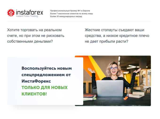 Eng yuqori kredit qo’llab-quvvatlash va eng past stopyut chegarasi. 100% bonus va to’ldirilmasa ham bonusni amalga oshirish uchun. InstaForex savdo shartlari mijozlarning daromad olishlari uchun yaratilgan.