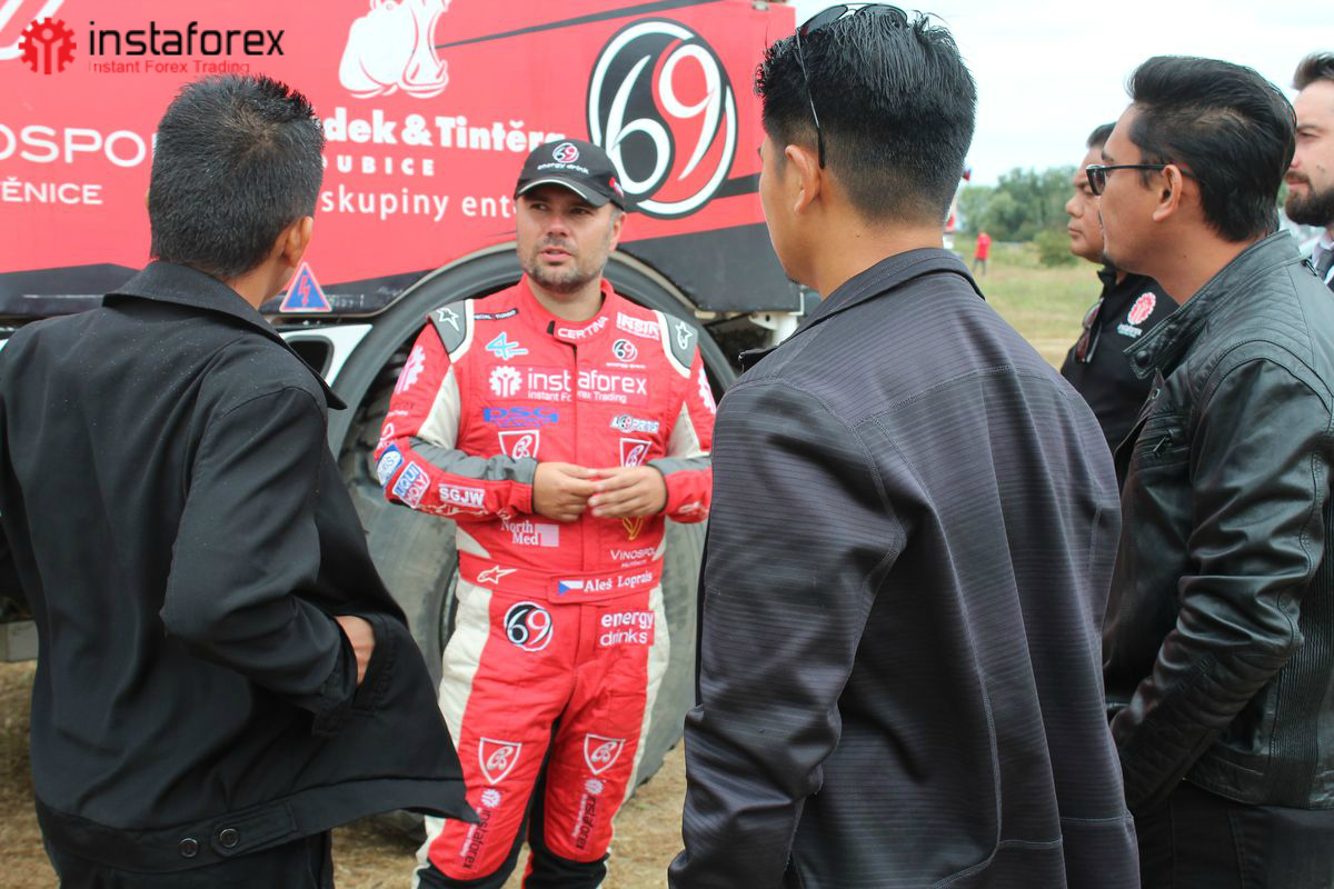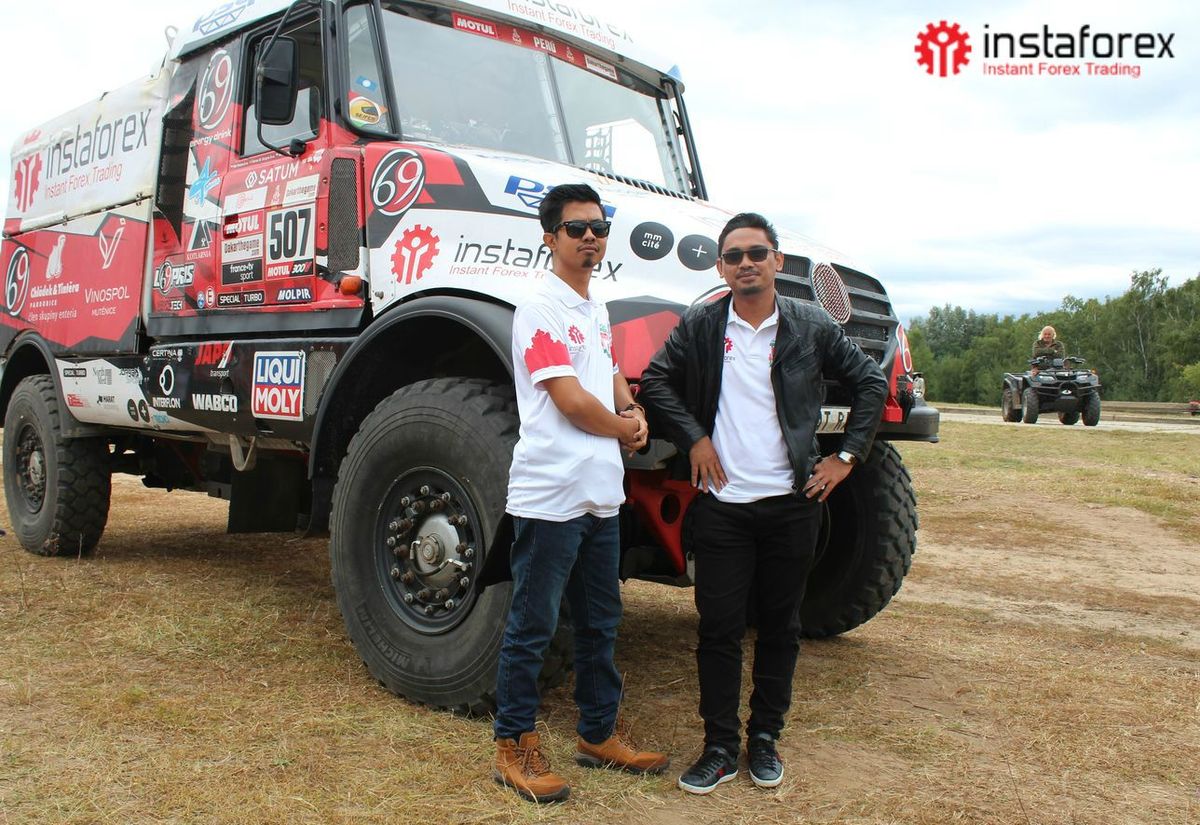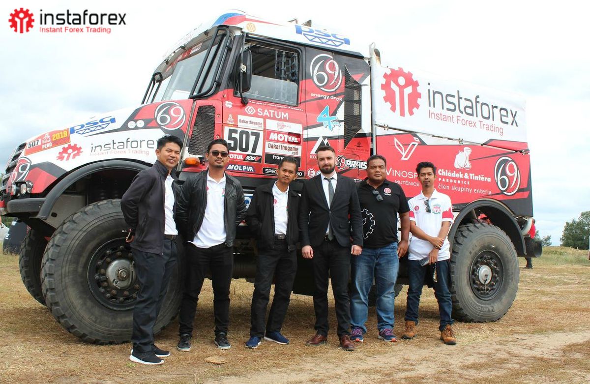 Vào ngày thứ hai, các vị khách của chúng tôi đã gặp gỡ các tay đua của đội InstaForex Loprais, đội đua nổi tiếng và là đội tuyển thường xuyên tham gia cuộc đua Dakar Rally - cuộc đua nước rút xuyên lục địa hàng năm mà được tổ chức ở các khu vực khác nhau trên thế giới. Trưởng nhóm và tay lái chính Aleš Loprais niềm nở giới thiệu về chiếc xe và trả lời các câu hỏi của các đối tác của chúng tôi về cuộc đua. Anh ấy cũng tham gia vào một cuộc đua xe tải cùng tất cả những người muốn trải nghiệm lái xe chân thật như cuộc đua thực sự. Không có từ nào có thể mô tả được hết những cảm giác tuyệt vời đó. Đó là một sự hồi hộp thực sự dù chỉ kéo dài một vài giờ khi được là một thành viên của phi đoàn Dakar Rally, gây cấn nghẹt thở trên chặn đường đua với tốc độ vô hạn.
